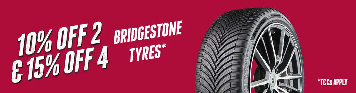 - 10% off 2-3 & 15% off 4 Bridgestone tyres ends midnight Friday 31st October 2025.